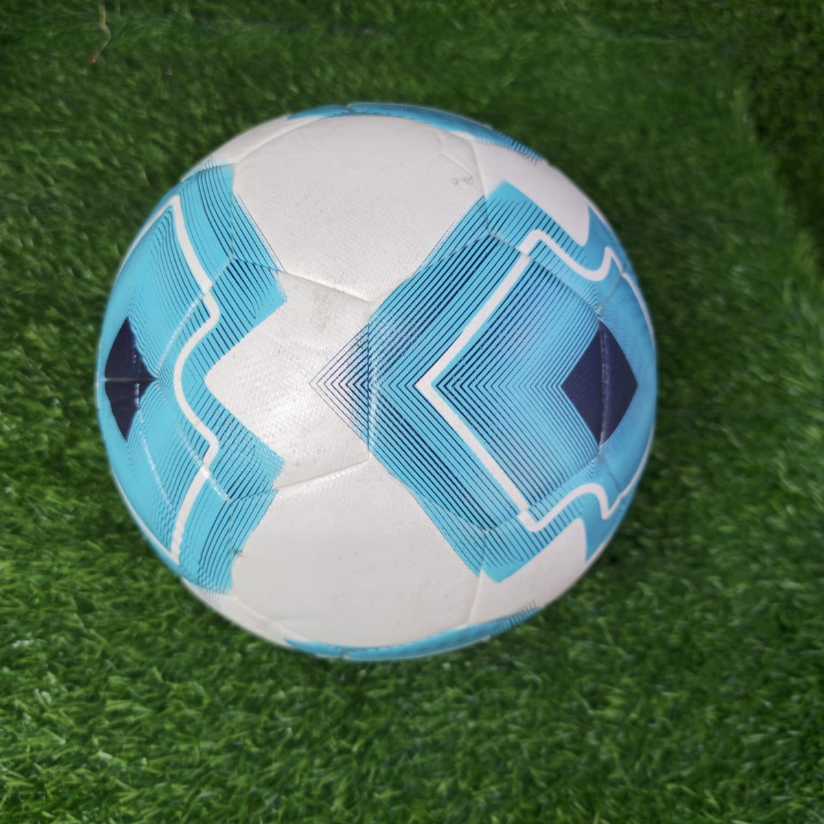 With its eye-catching blue geometric design, this football stands out visually while delivering dependable performance for players of all levels.