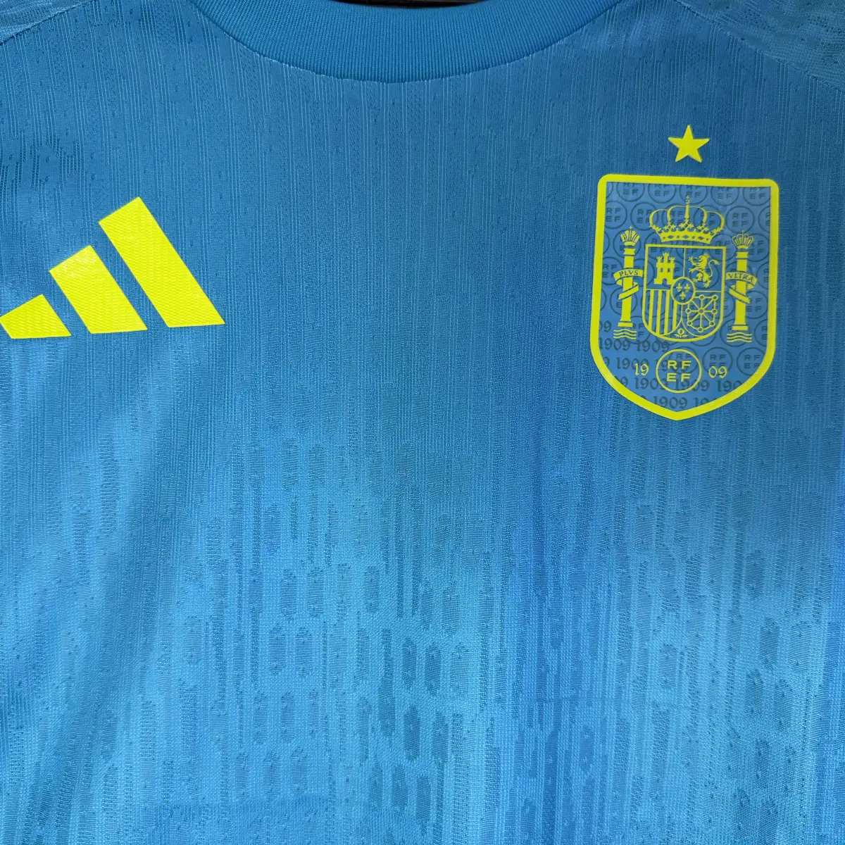 Constructed with match-grade, ultra-lightweight fabric, this player version jersey provides superior breathability, moisture control, and a slim athletic fit—identical to what professional goalkeepers wear on the pitch. The official Spain national team crest proudly represents La Roja’s winning legacy, making this jersey an essential piece for serious supporters and collectors.
