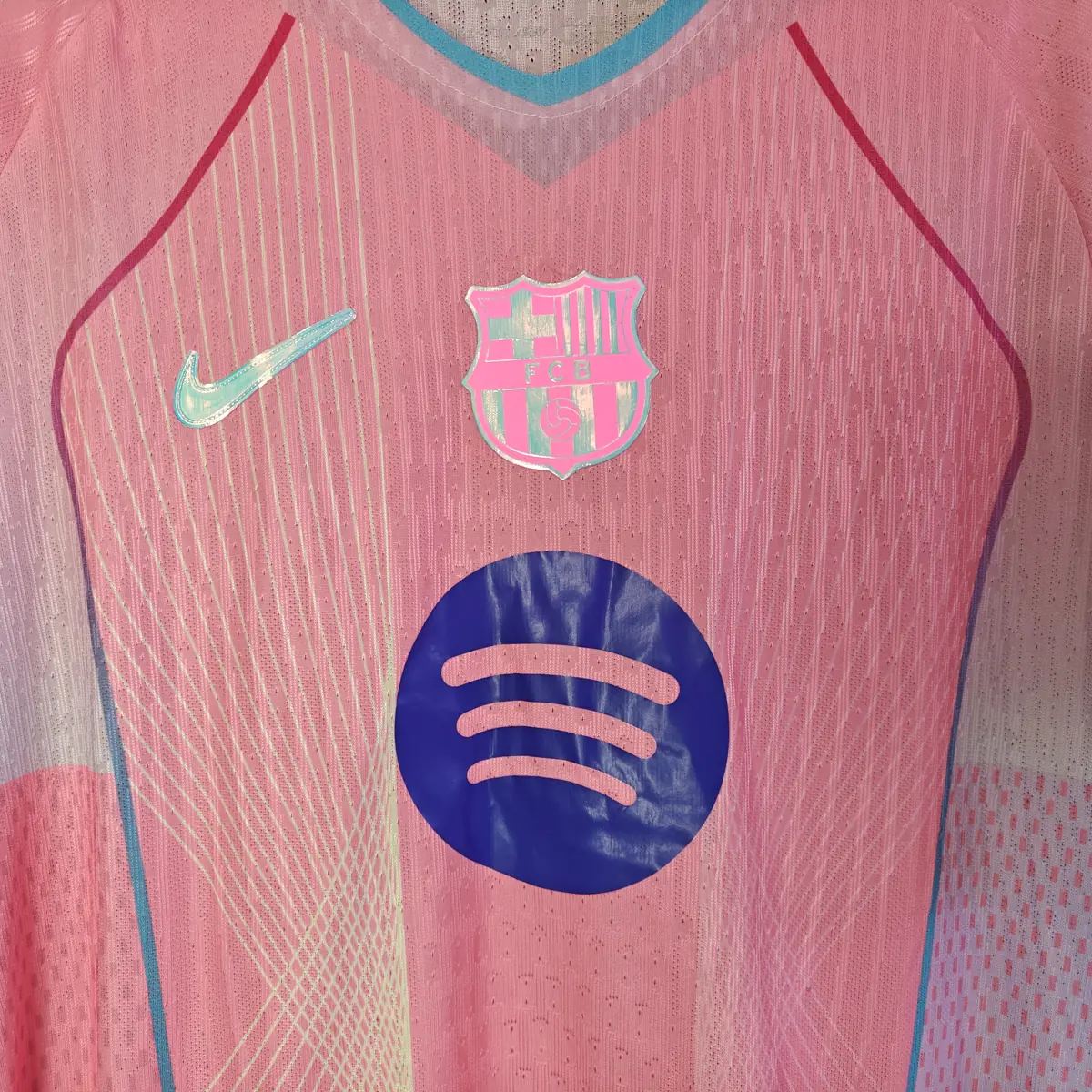 Support Barça in bold modern style with the FC Barcelona 2025–26 Special Edition Pink jersey. Designed as a standout special-edition release, this jersey features a striking pink colorway with sleek graphic detailing that reflects the club’s innovative approach to modern football fashion. Perfect for fans who want something unique, this club jersey blends eye-catching design with lightweight comfort for everyday wear.