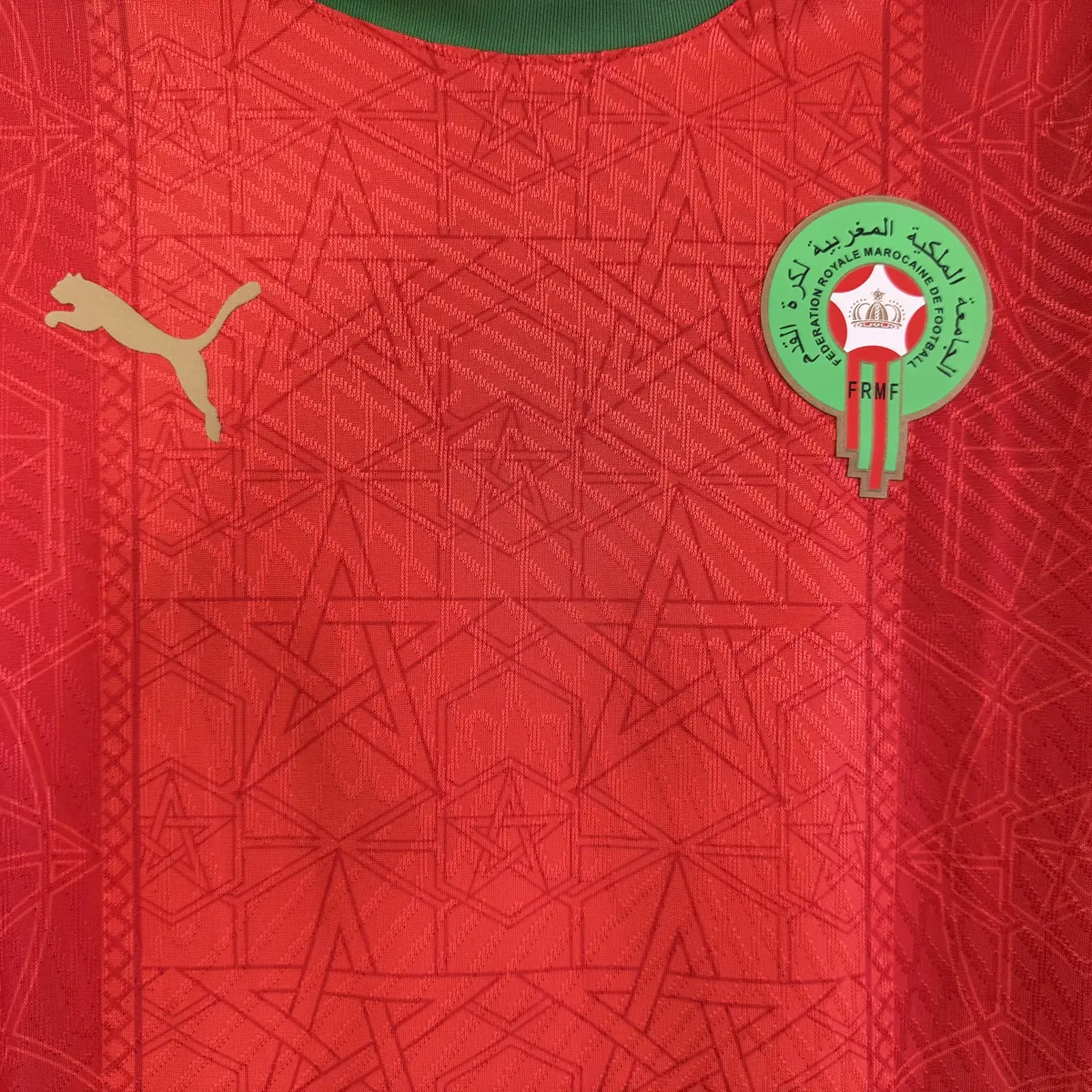 Built using ultra-lightweight, match-grade fabric, this player version jersey offers exceptional breathability, moisture control, and a slim athletic fit—identical to what professional players wear on the pitch. Green side panels and collar accents represent Morocco’s iconic national colors, while the official Royal Moroccan Football Federation crest stands proudly on the chest, symbolizing passion, unity, and pride.